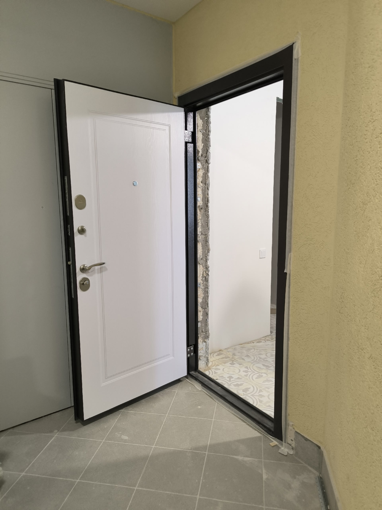 Металлическая входная дверь в квартиру чёрная №37 — это надежный выбор для установки в квартире, даче, частном доме, офисе или подъезде. Ее прочная конструкция из профильных труб 50x25 мм и холоднокатанной стали толщиной 2 мм обеспечивает отличную устойчивость к внешним воздействиям. Внешняя отделка в черном цвете придает двери современный и стильный вид, а внутренняя отделка аккуратно завершает её внешний вид. Уплотнение с двумя контурами резинового уплотнителя защищает от влаги и пыли, хотя терморазрыв отсутствует. Дверь оборудована надежными замками «Просам» и «Мосрентген», каждый с тремя ригелями, что гарантирует высокий уровень безопасности. В добавок к стандартной комплектации, можно выбрать дополнительные элементы — зеркало, стеклопакет или кованые детали, а также установить видеодомофон.